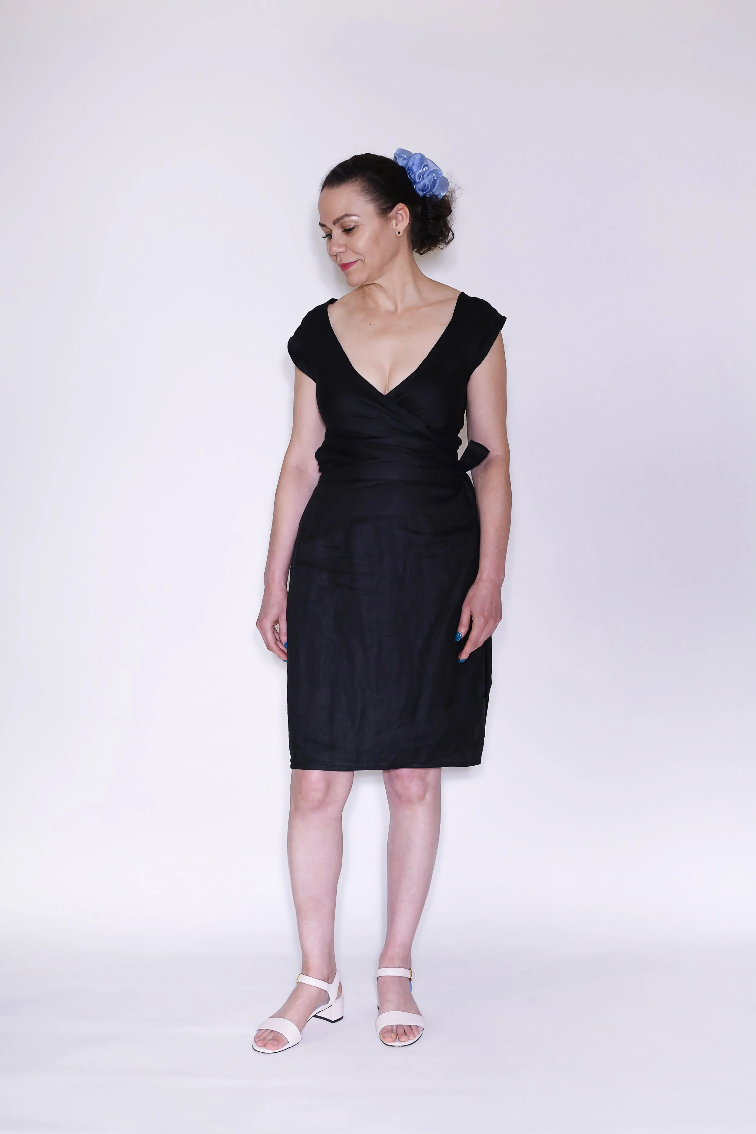 The Ezra Pencil Wrap skirt was created when I kept thinking about a skirt that would look professional enough for work (I teach at a University on the side!), but is still comfy and cute for a casual look. Ezra is made with thick, 100% linen twill and fits at the waist with ties. 100% recycled polyester thread (Oeko-Tex 100 certified) is used throughout the garment. Dress it up with fun heels, take it to work with flats/heels, or pair it wit